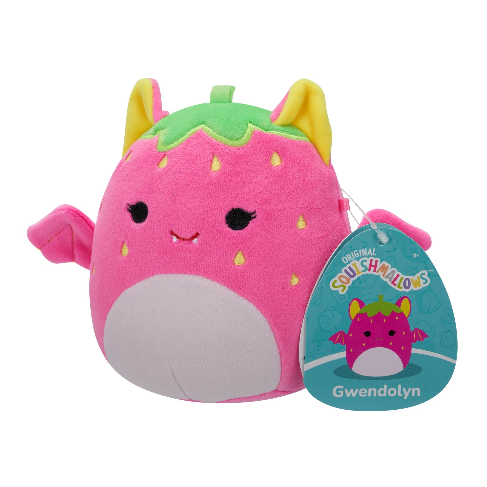 There’s no telling who you might pull from the Fusion Mystery Squad! Each 5-inch Squishmallows comes with a unique name and bio—like Stanley the Panda Banana and Gwendolyn the Strawberry Fruit Bat—and makes the perfect cuddly companion for long flights, scary nights—even mad science experiments! See if you can collect all 6 Squishmallows and join the Squad today!