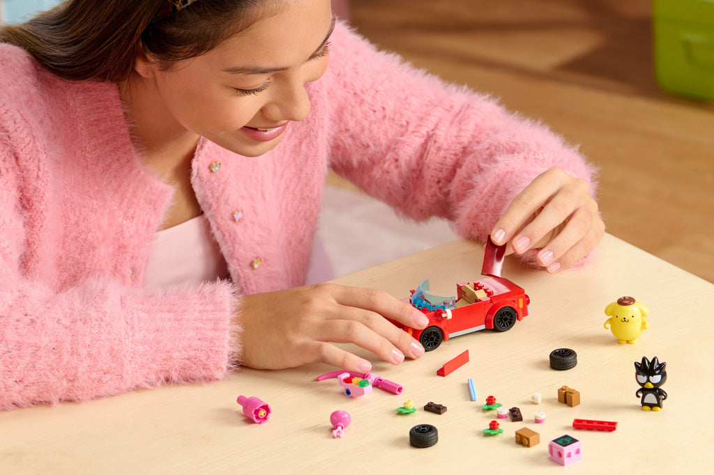Join the delightful Pompompurin and the mischievous Badtz-maru as they zoom through town in their dazzling, buildable convertible.
