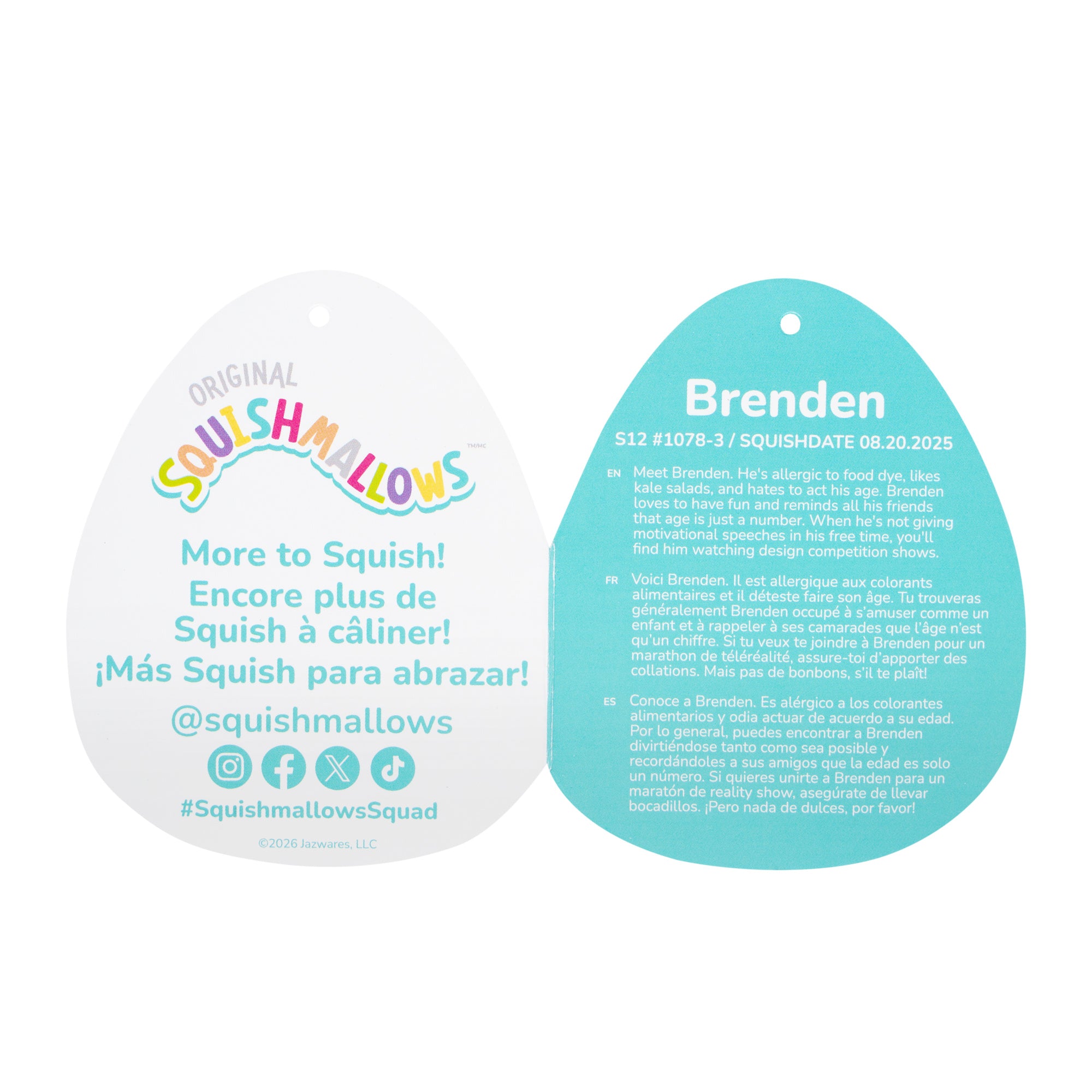 8.20.2025Meet your new bestie, Brenden! Each Squishmallow plush comes with its own unique name and bio and makes the perfect cuddly companion for long flights out or comfy nights in. Brenden is only by Original Squishmallows. Join the Squad today!