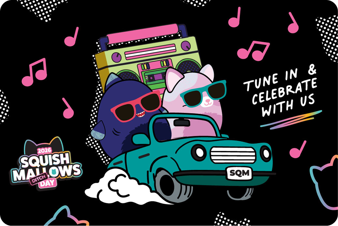 #SquishmallowsDitchDay is your excuse to skip the routine, drop the to-do list, forget your responsibilities, and embrace all things Squish leading up to the Squishmallows Day celebration on March 7th! What will YOU ditch for Squish?