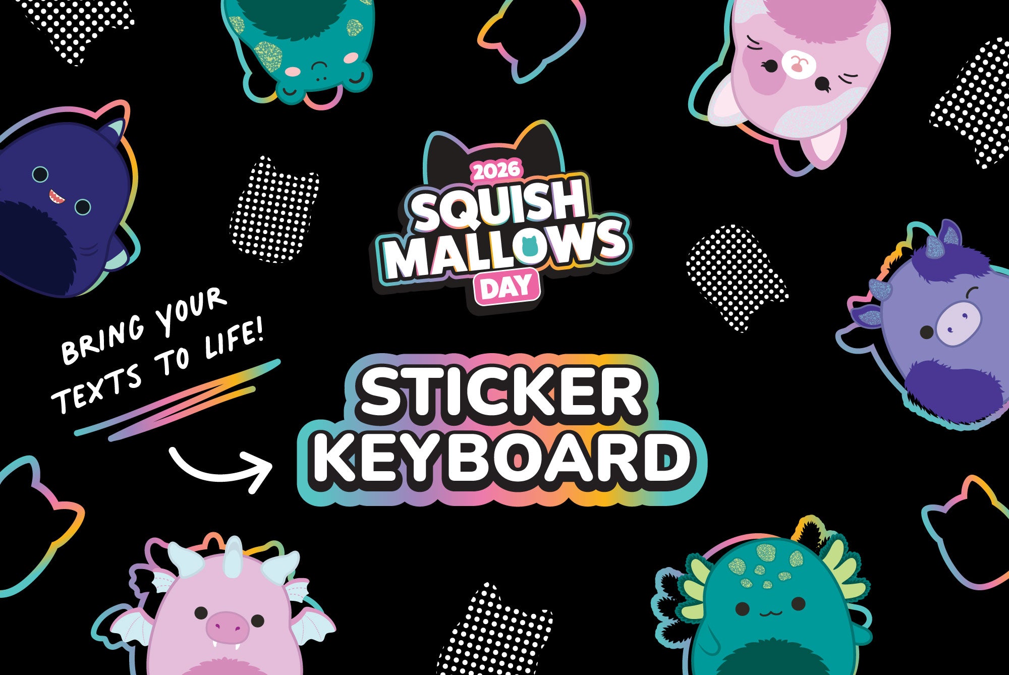 Download the Squishmallows Day sticker keyboard now on the Apple App Store and Google Play.