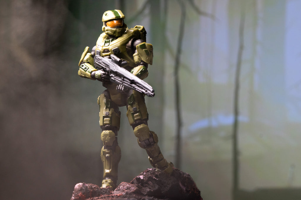 Master Chief comes packed with a figure display stand to showcase him in epic action poses.